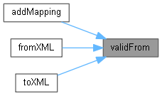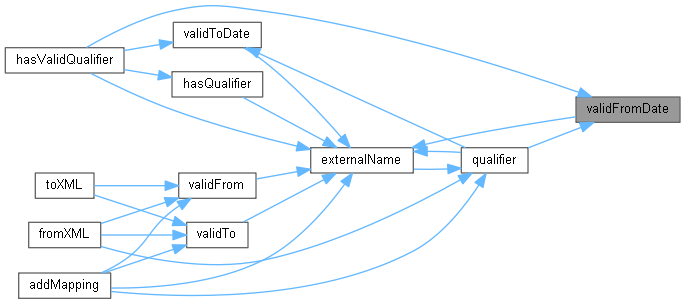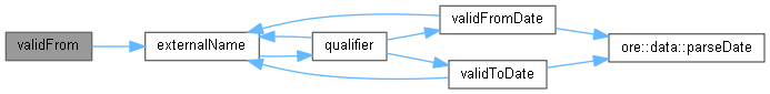 Here is the caller graph for this function:| Date validFromDate | ( | const std::string & | externalName | ) | const |