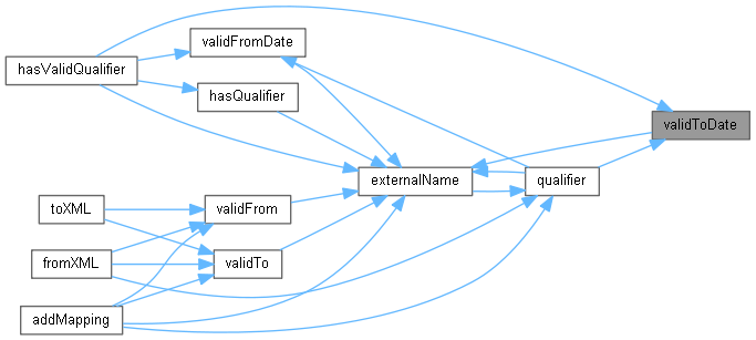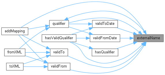Here is the caller graph for this function:| string validTo | ( | const std::string & | externalName | ) | const |