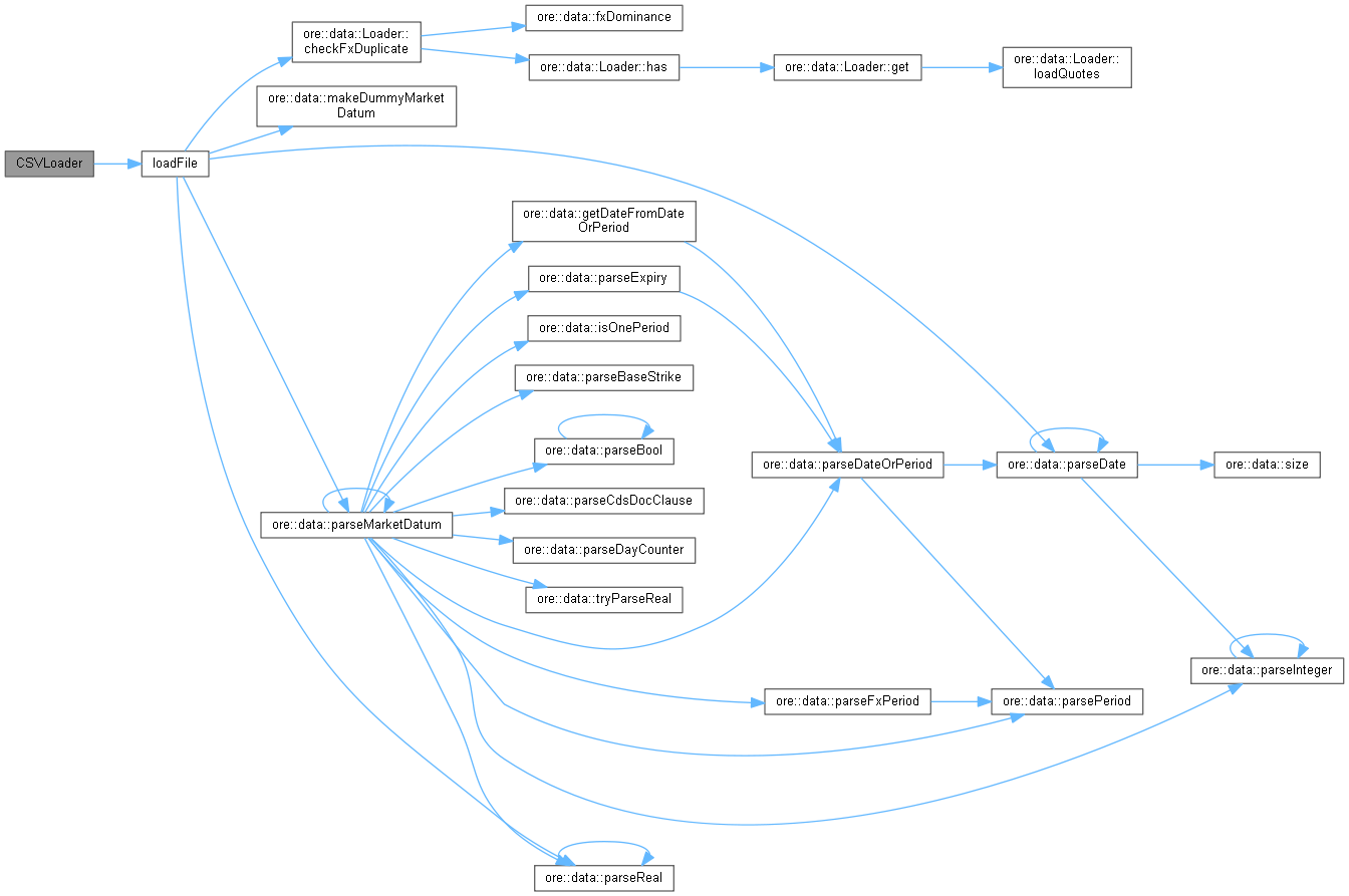 | CSVLoader (const string &marketFilename, const string &fixingFilename, const string ÷ndFilename, bool implyTodaysFixings=false, Date fixingCutOffDate=Date()) | |