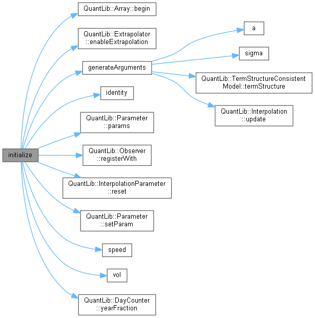 | void | initialize (const Handle< YieldTermStructure > &yieldtermStructure, const std::vector< Date > &speedstructure, const std::vector< Date > &volstructure, const std::vector< Real > &speed, const std::vector< Real > &vol, const SpeedInterpolationTraits &speedtraits, const VolInterpolationTraits &voltraits, const std::function< Real(Real)> &f, const std::function< Real(Real)> &fInverse) |